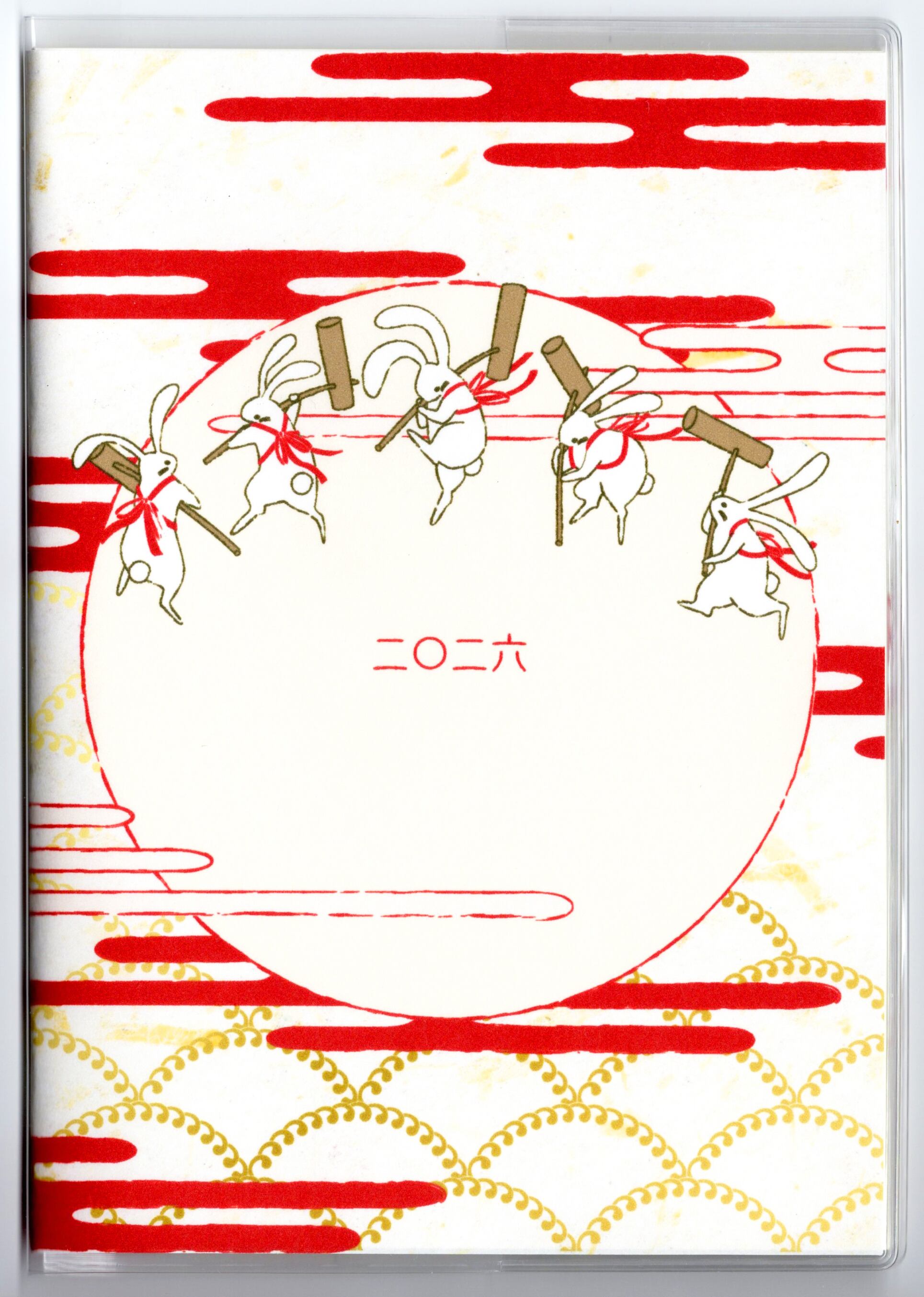 10月始まり 2026年 餅つき兎 スケジュール手帳 イラストカバー2枚 栞付き B6 全48ページ 午年 馬 十二支 うさぎ 動物