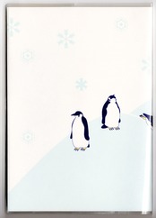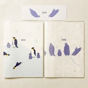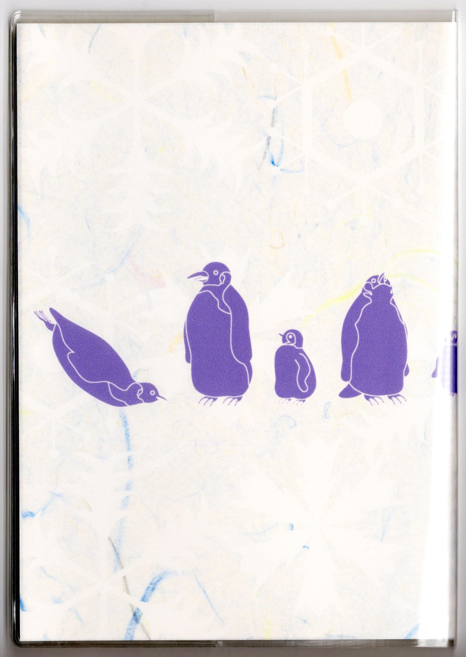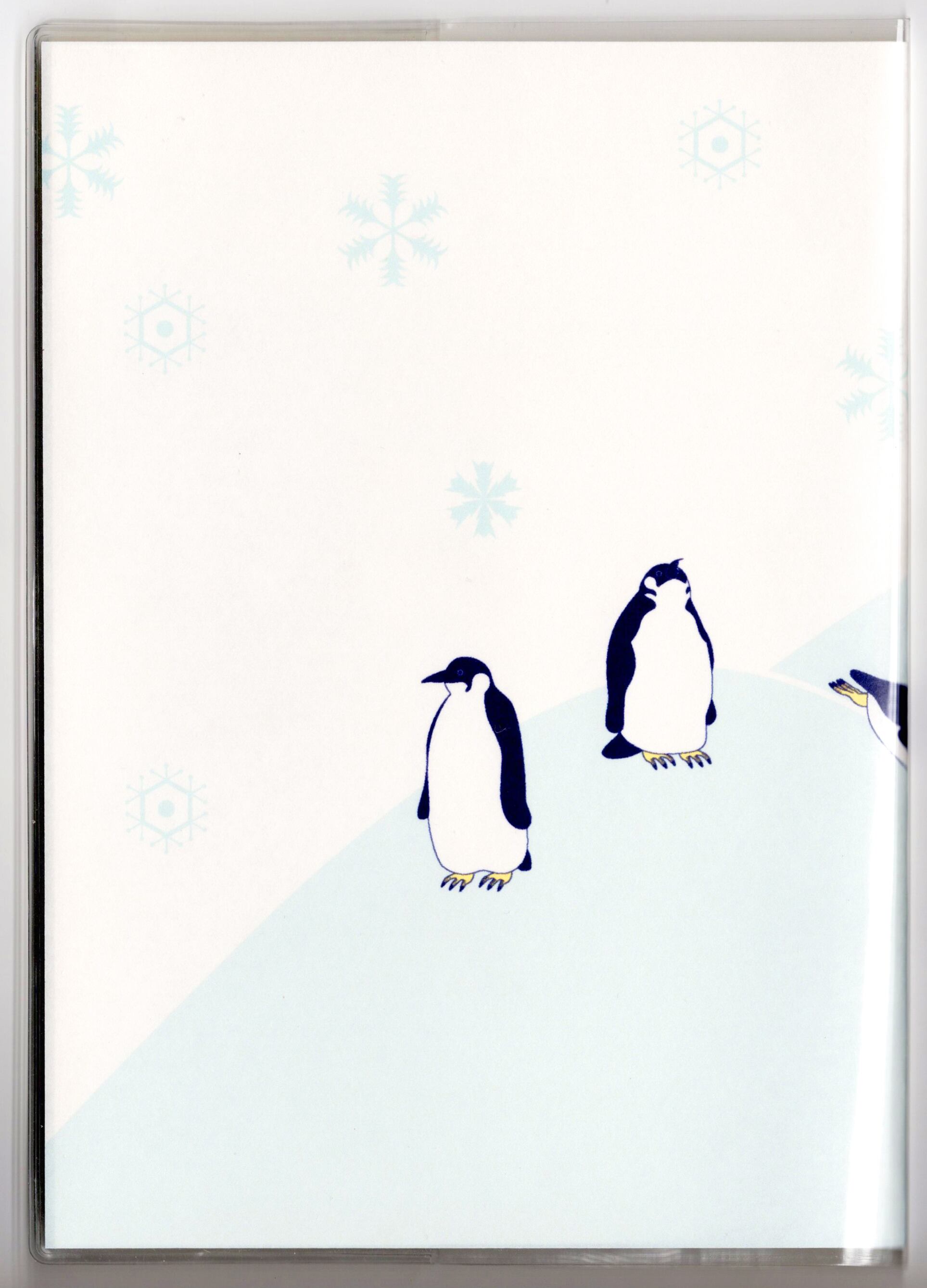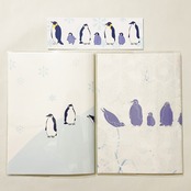 『皇帝ペンギン』と『皇帝ペンギン-総雪柄-』のイラストカバー2枚、ビニールカバー1枚、栞1枚、手帳1冊セット。