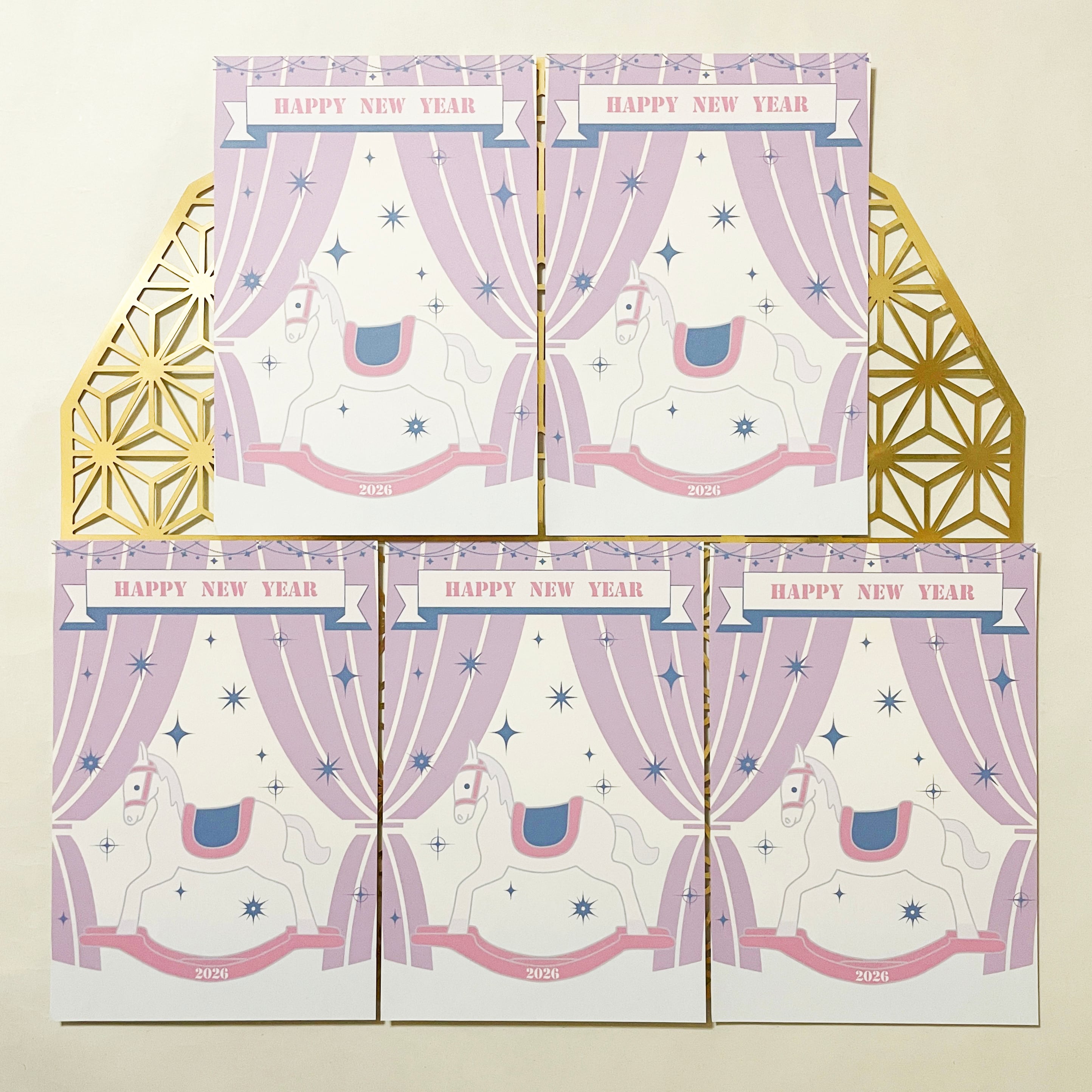2026 星木馬 年賀状5枚セット お正月 新年 馬 午年 謹賀新年 賀正 迎春 日本 和 ポストカード 十二支