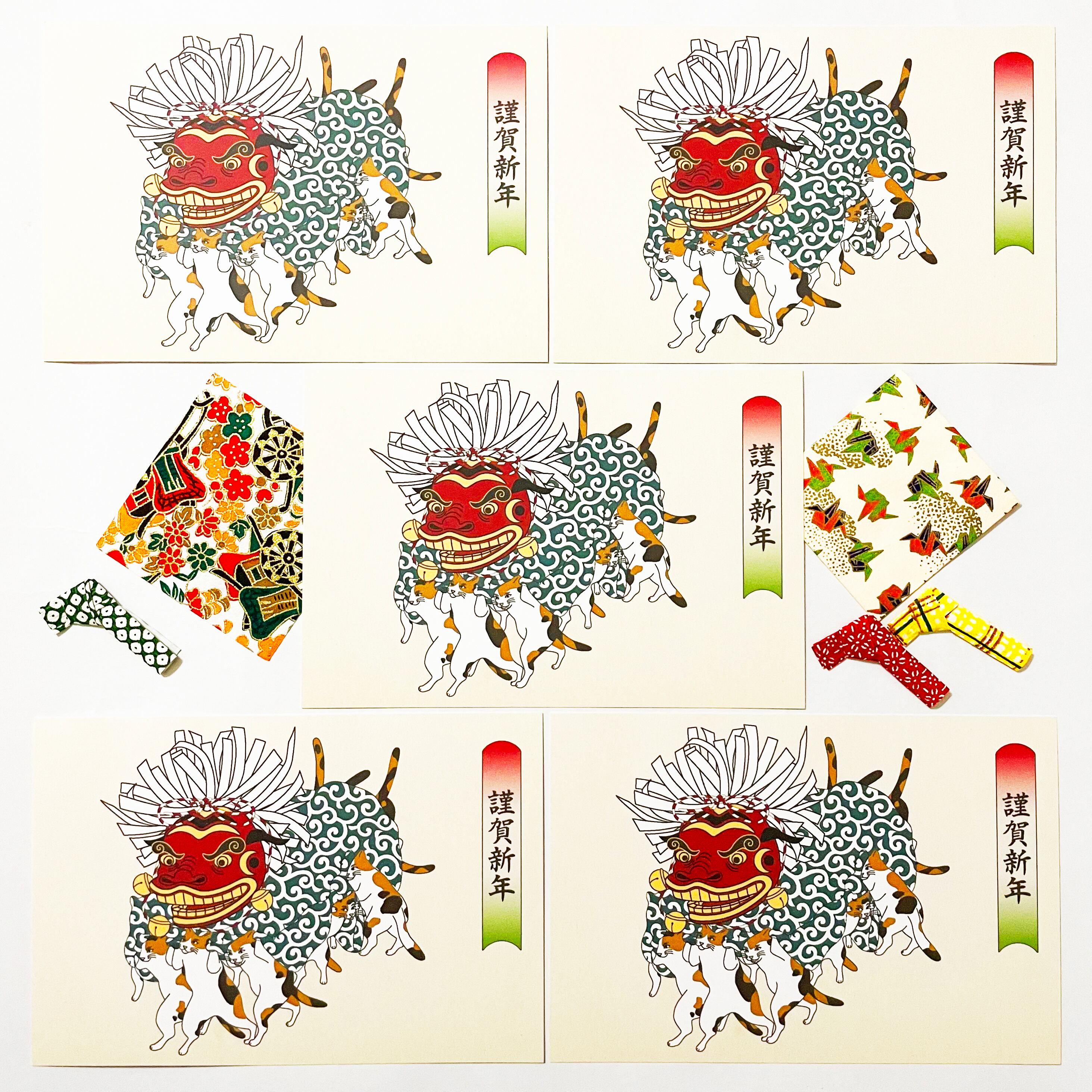 ・2026 三毛猫の獅子舞遊び 年賀状5枚セット