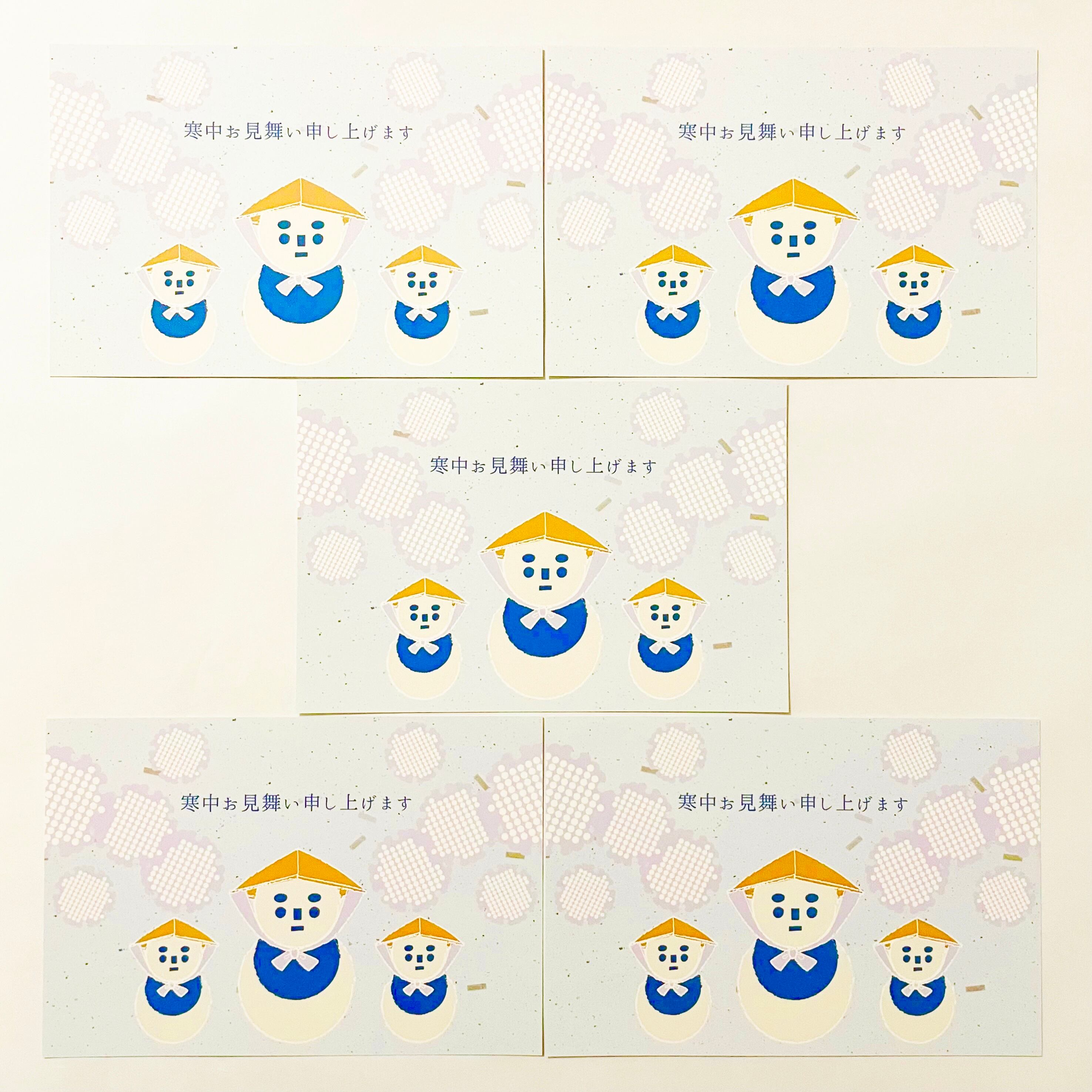 ・2026 笠雪だるま 寒中お見舞い5枚セット