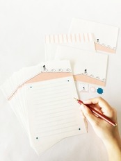 便せん1種が計10枚、封筒1種が計3枚、シール3種が1枚ずつ計3枚がセットになっています。