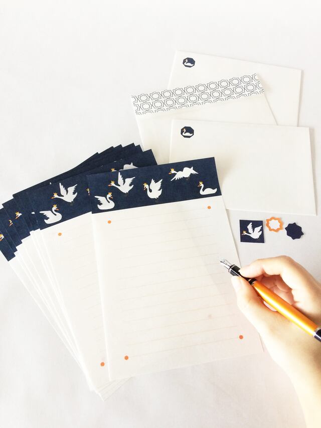 11人の王子が魔法で白鳥に変えられてしまうアンデルセン童話『白鳥の王子』をモチーフにしたレターセットです。