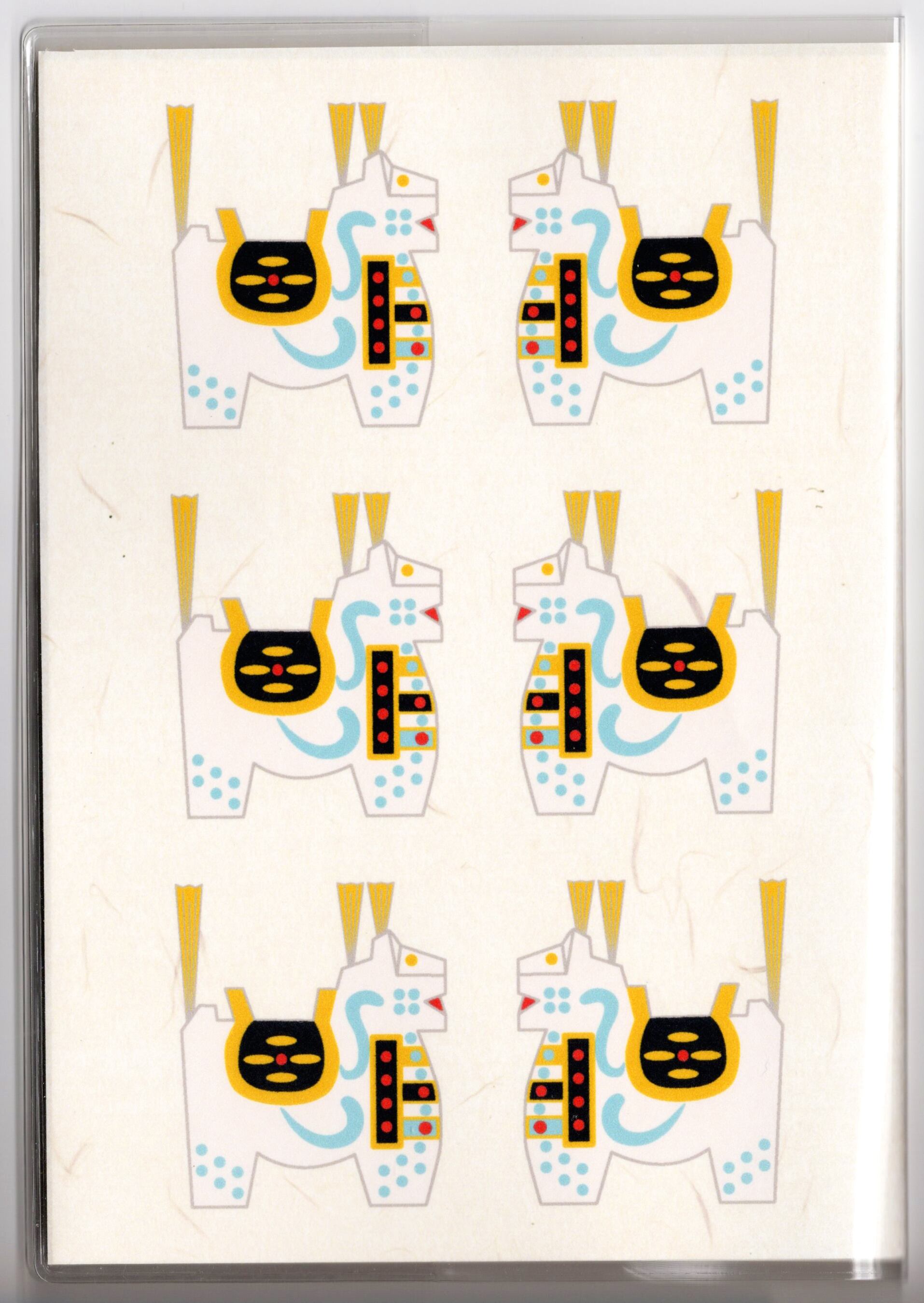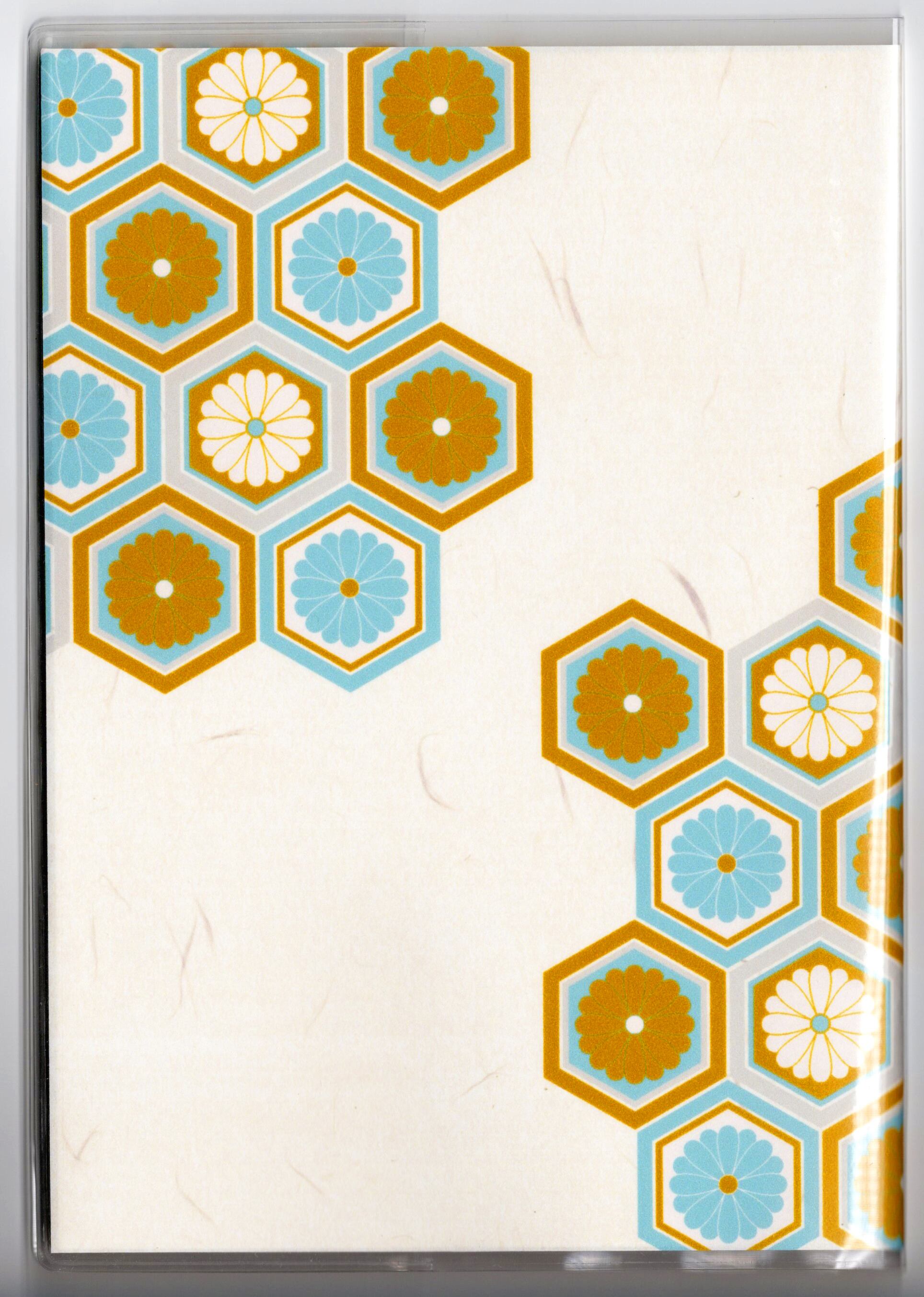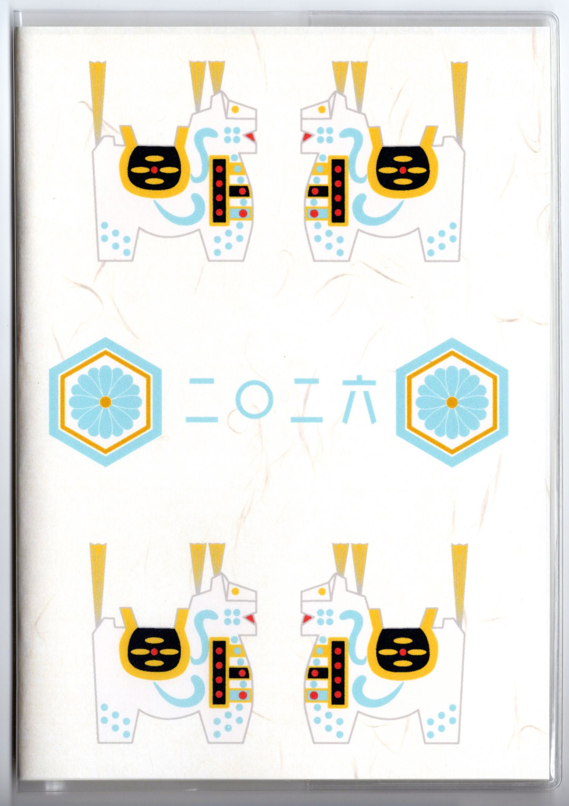 『白八幡馬亀甲菊文』と『白八幡馬紋様』のイラストカバー2枚、ビニールカバー1枚、栞1枚、手帳1冊セット。