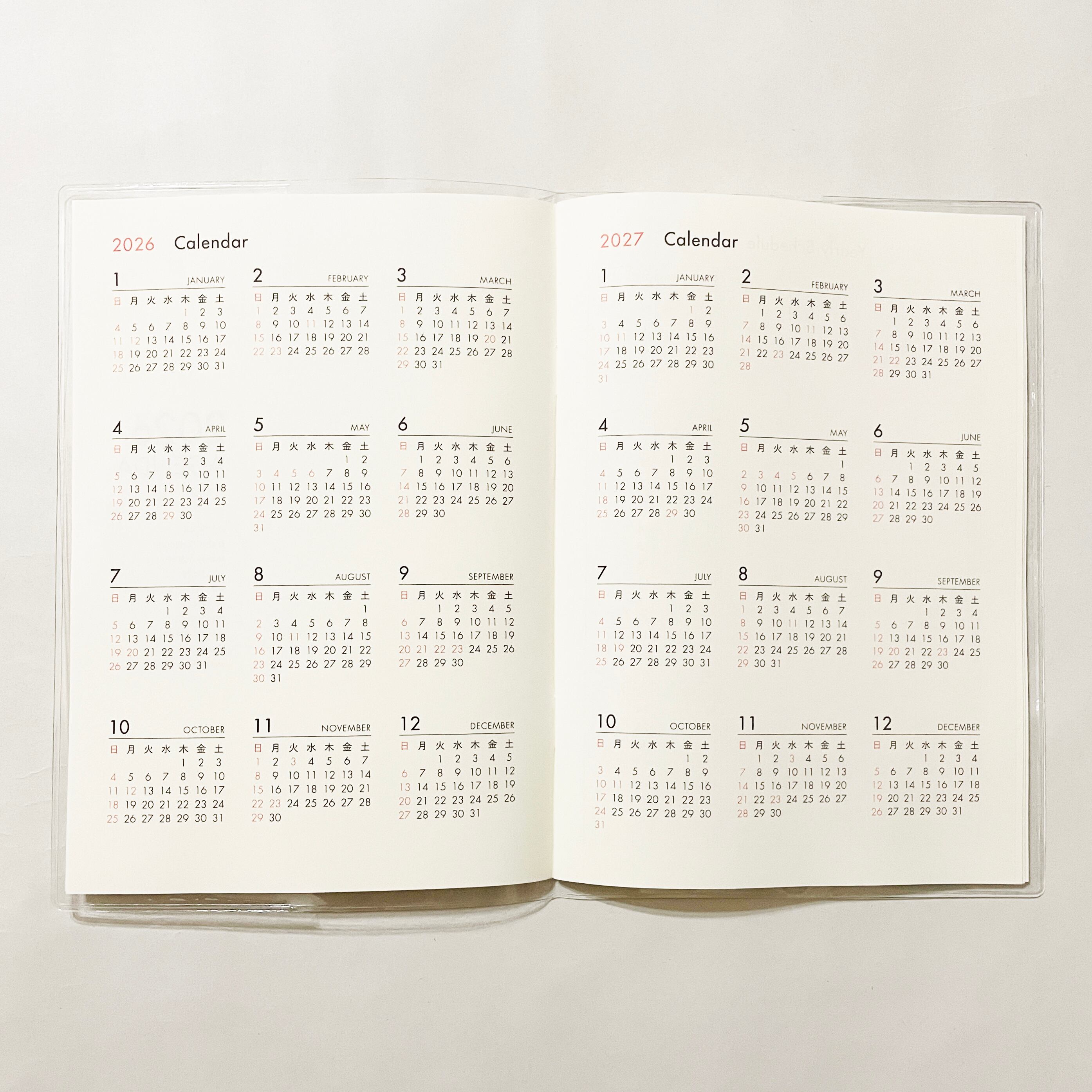 ・2026年〜2027年のカレンダー2ページ