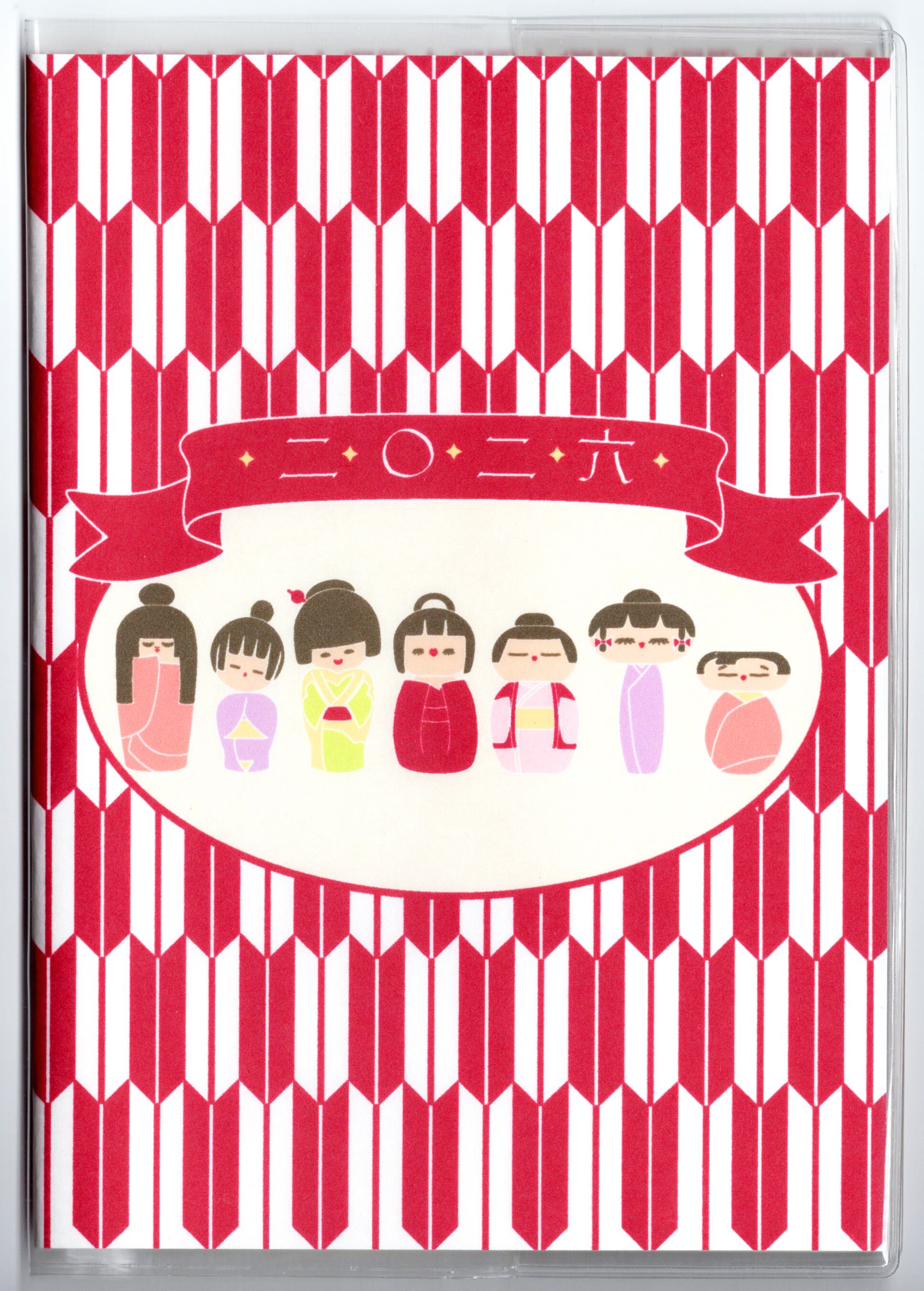 4月始まり 2026年 赤こけし スケジュール手帳 イラストカバー2枚 栞付き B6 午年 馬 十二支 昭和 レトロ