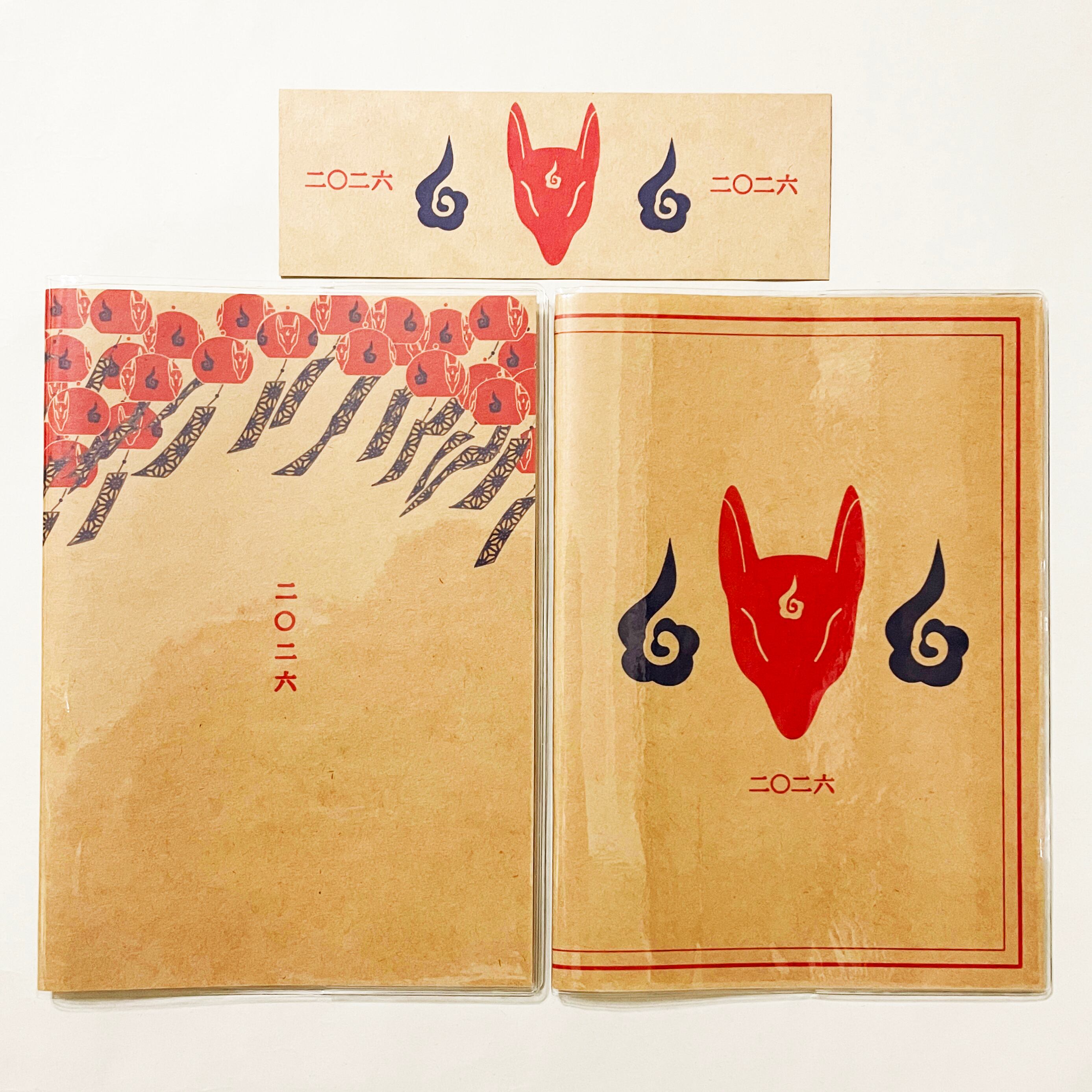 4月始まり 2026年 紅風鈴狐 スケジュール手帳 イラストカバー2枚 栞付き B6 午年 馬 十二支 狐の嫁入り 狐面 狐 動物