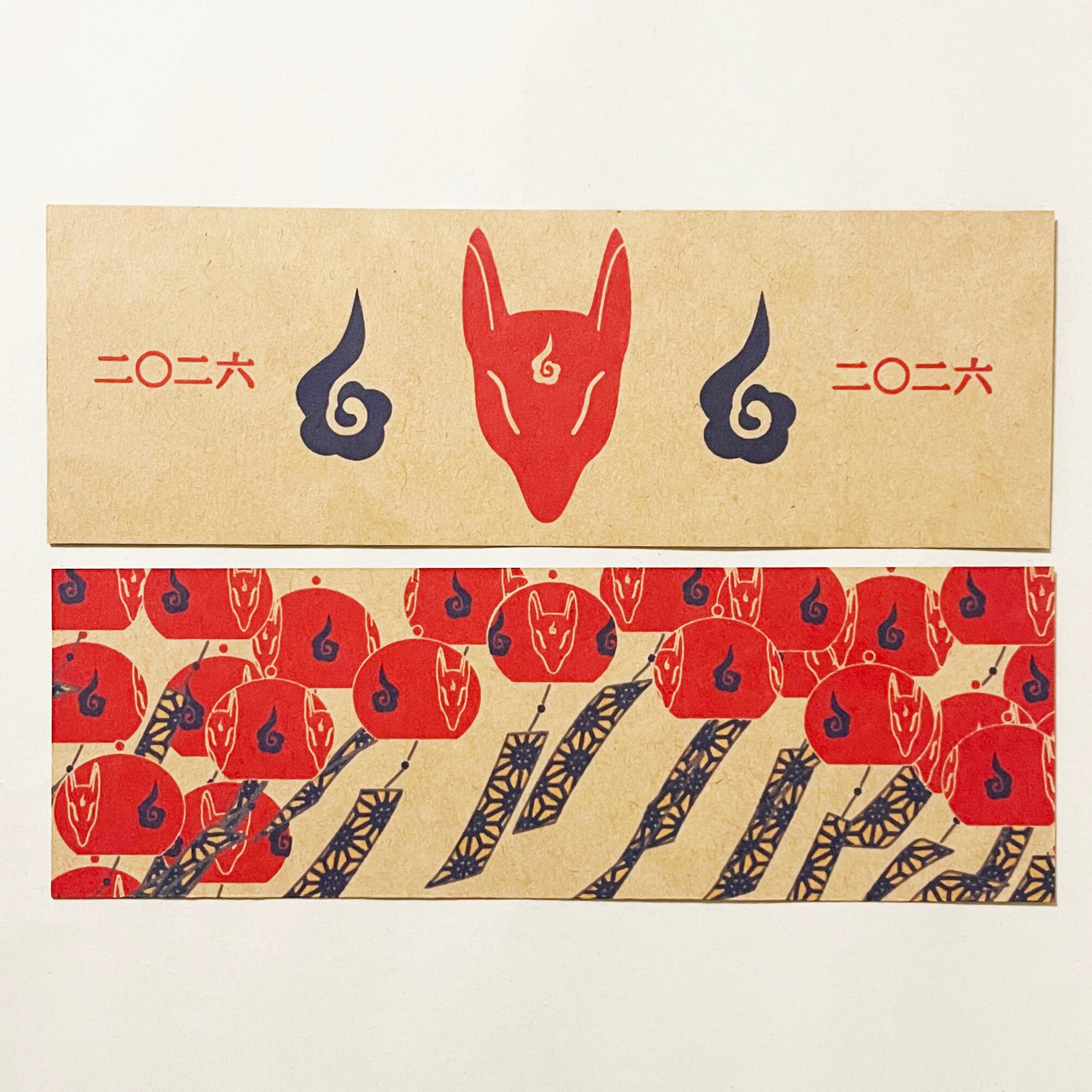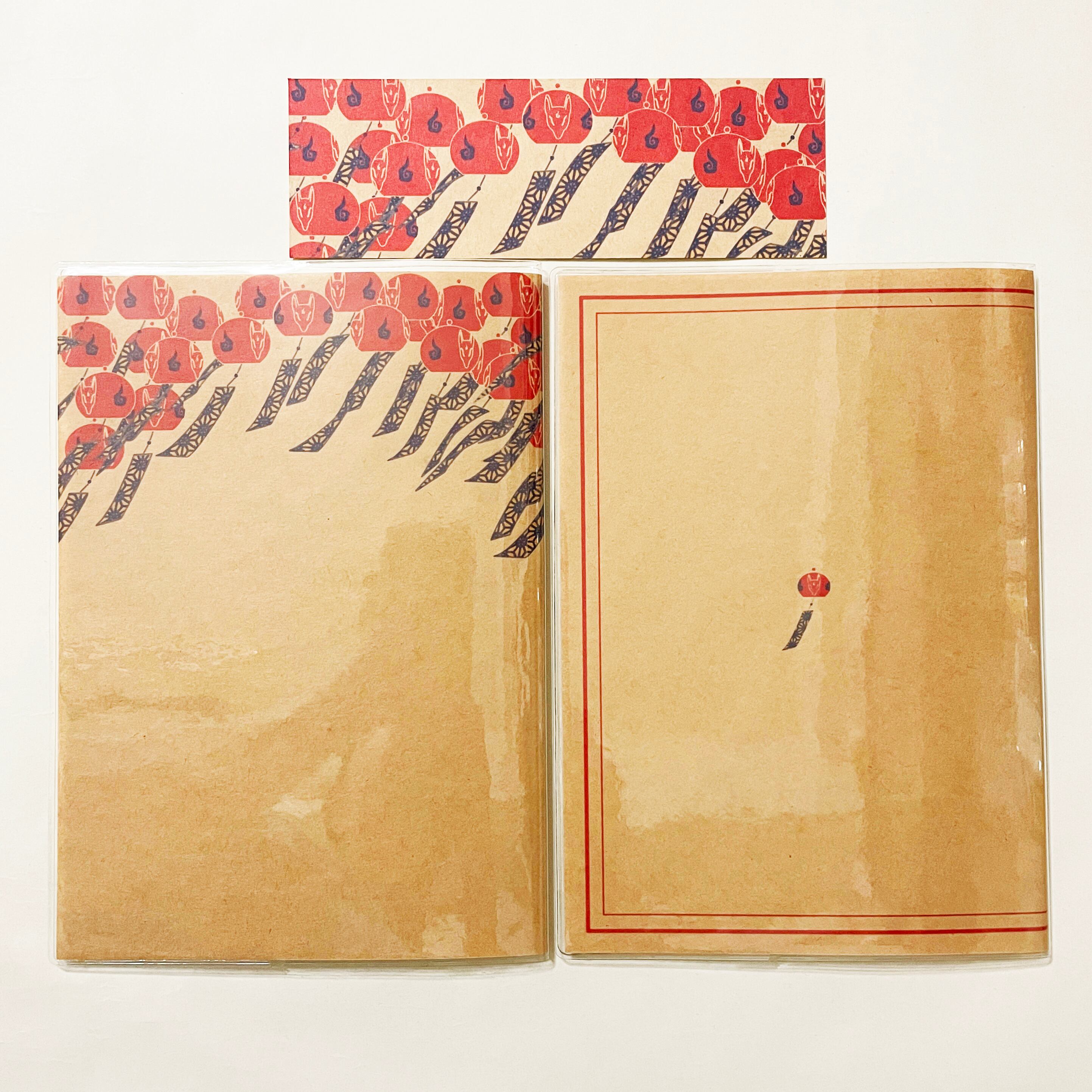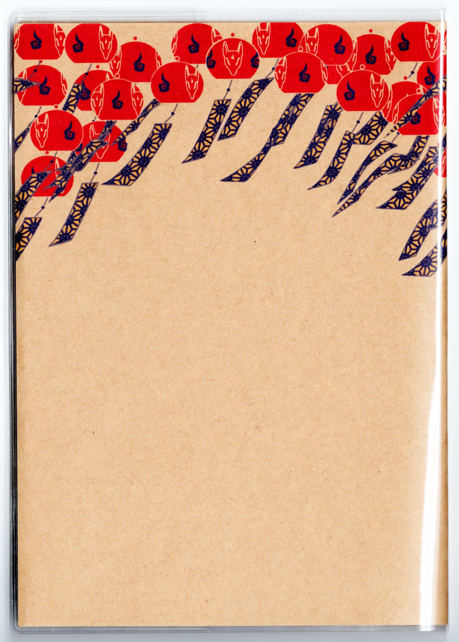 『紅風鈴狐』と『紅風鈴狐-狐アップ-』のイラストカバー2枚、ビニールカバー1枚、栞1枚、手帳1冊セット。