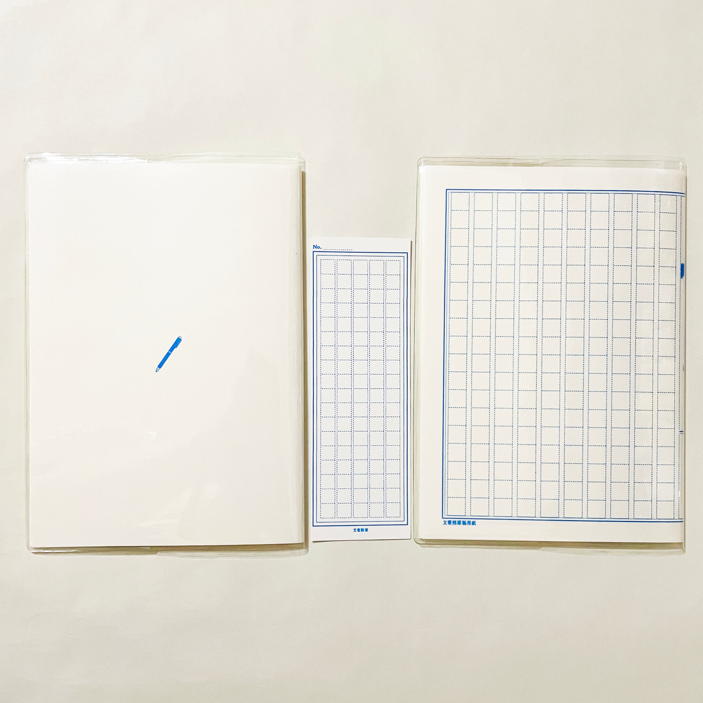 『文豪熊』と『原稿用紙』のイラストカバー2枚、ビニールカバー1枚、栞1枚、手帳1冊セット。