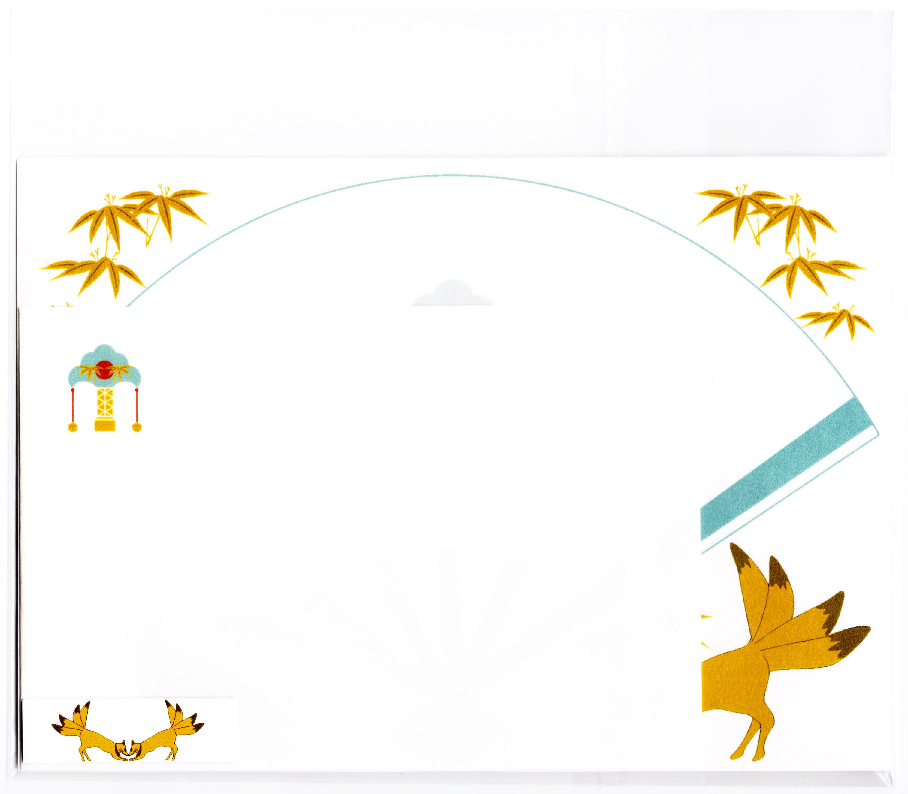 投扇興天狐 レターセット 扇子 狛狐 四尾 狐の嫁入り 狐面 キツネ 日本 和 封筒 シール 便せん 御朱印 お守り