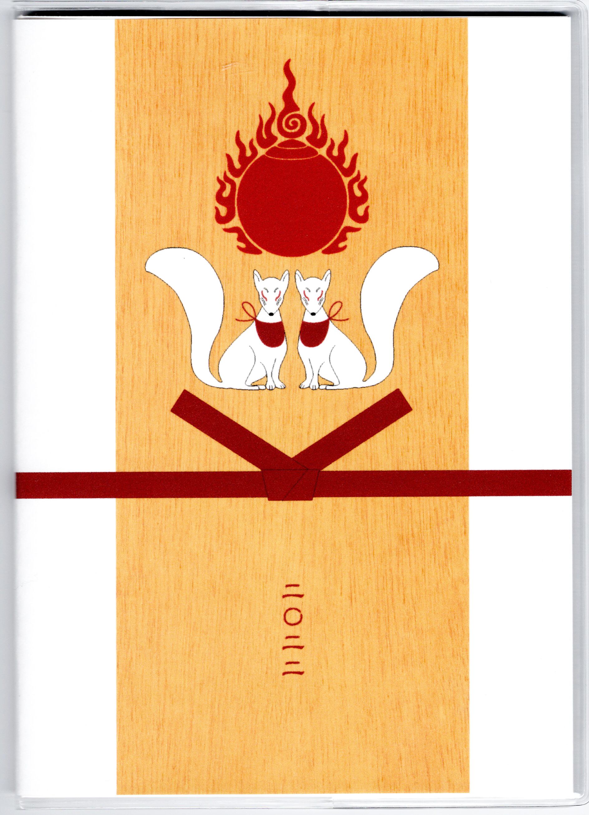 狛狐が並ぶ御札風デザイン。