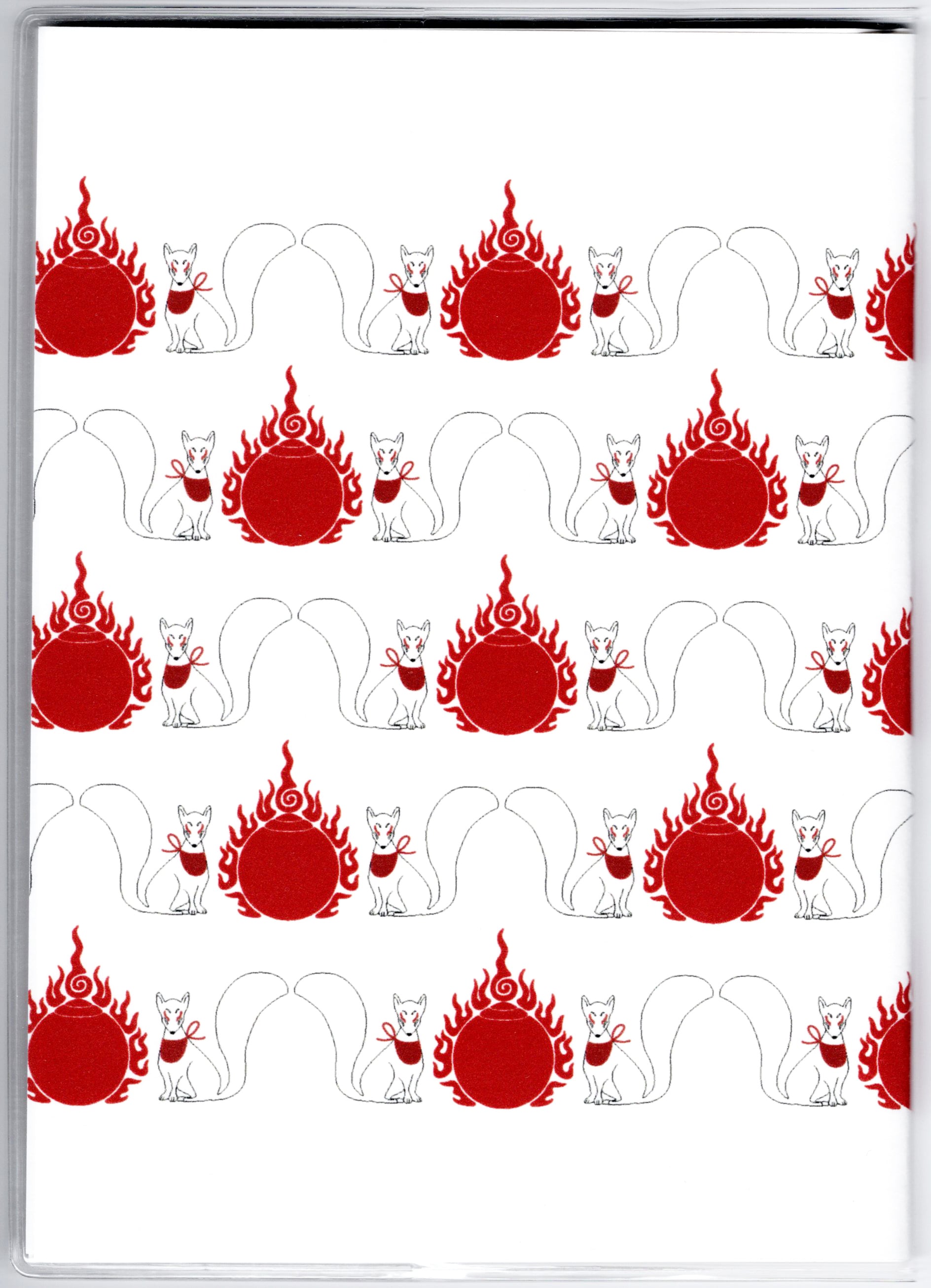 『御札狐』と『御札狐-総柄-』のイラストカバー2枚、ビニールカバー1枚、栞1枚、手帳1冊セット。