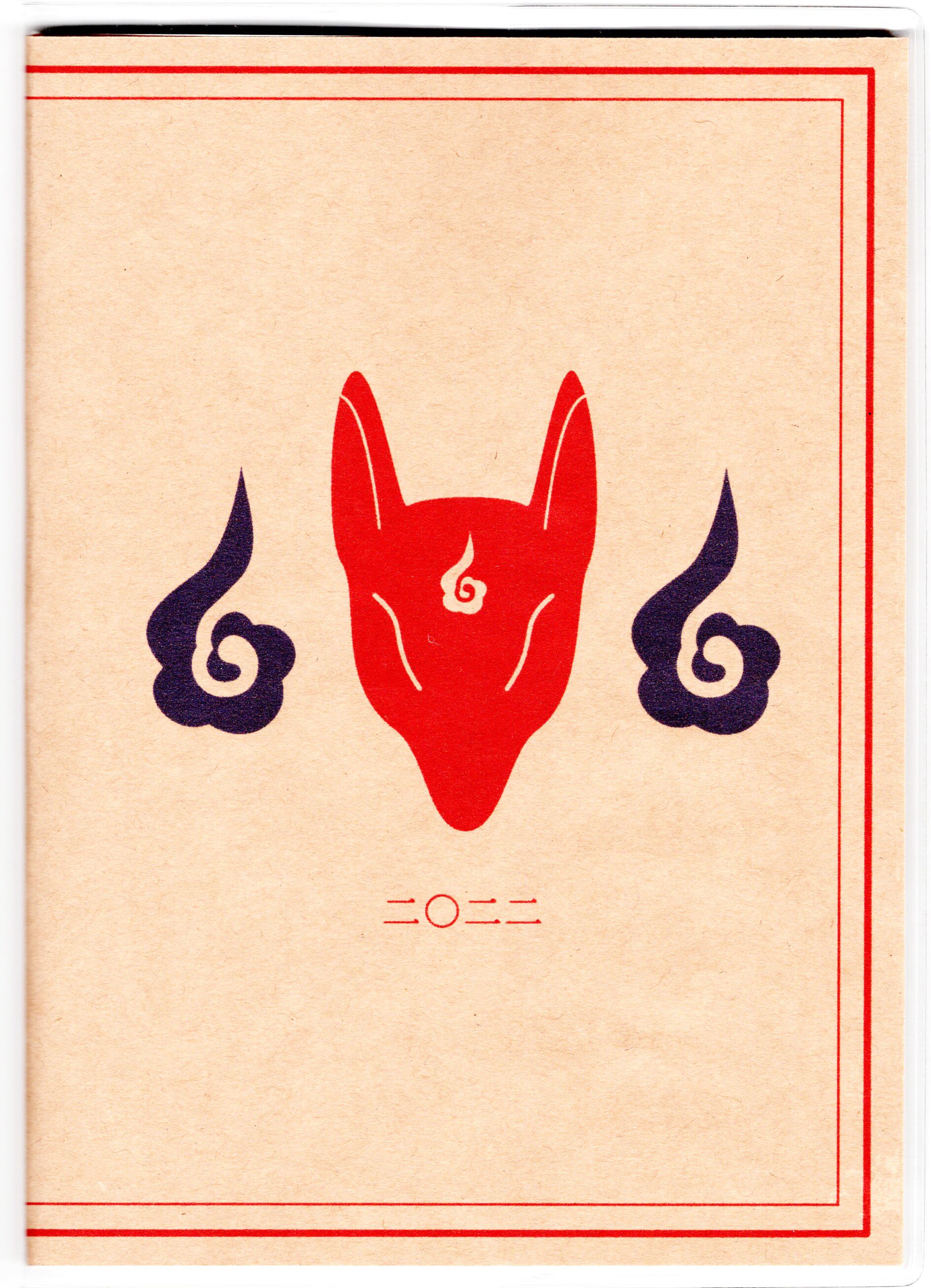 『紅風鈴狐』と『紅風鈴狐-狐アップ-』のイラストカバー2枚、ビニールカバー1枚、栞1枚、手帳1冊セット。