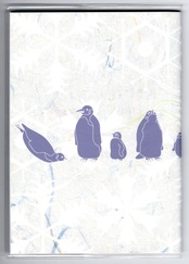 佇んだり滑ったりしている皇帝ペンギンたちのデザイン。